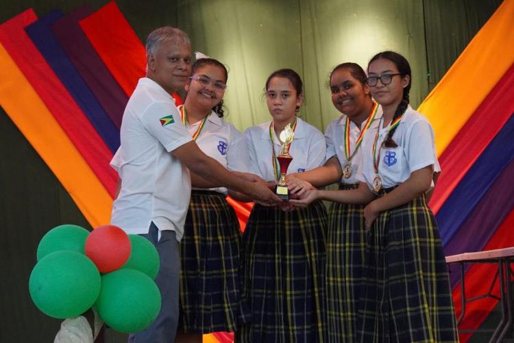 President of the GCF Anand Raghunauth presenting awards to our talented Marian Girls Chess Team.